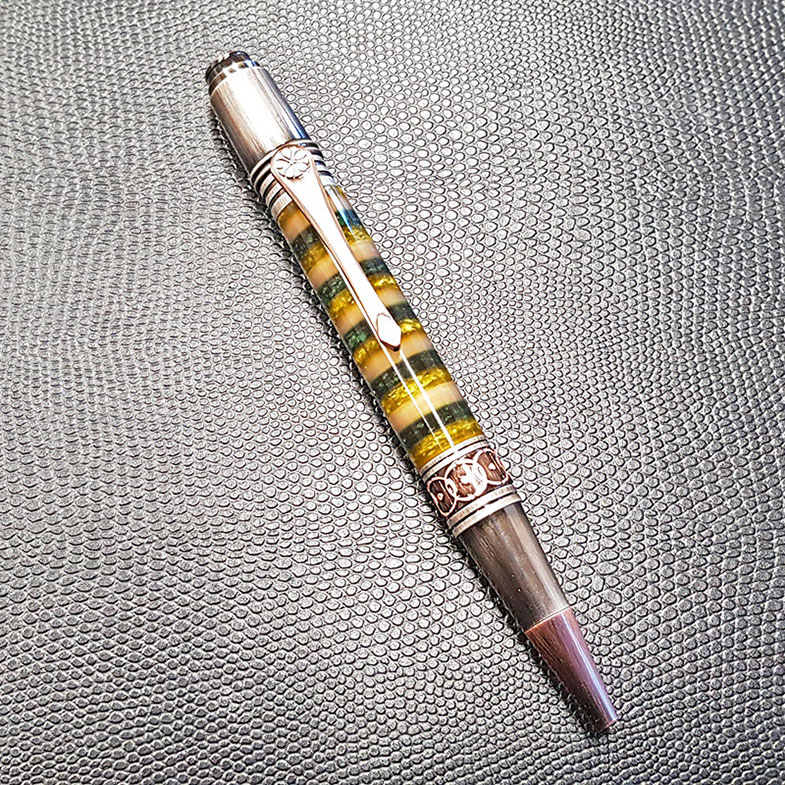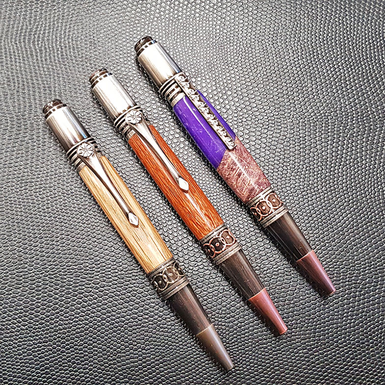 Die gebrauchten Whiskeyfässer werden bis auf die letzte Daube zerlegt. Die Dauben werden innen ausgebürstet und entsprechend zugeschnitten. Aus diesem Stück Daube entsteht nun ein handgefertigter, edler Kugelschreiber, Füller oder Rollerball aus Amerikanischer Weißeiche.